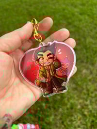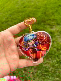 Double Sided Charm, One side with Holographic Flakes/Hearts 3 Inches tall with a Heart Clasp